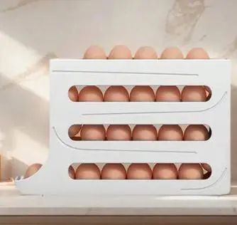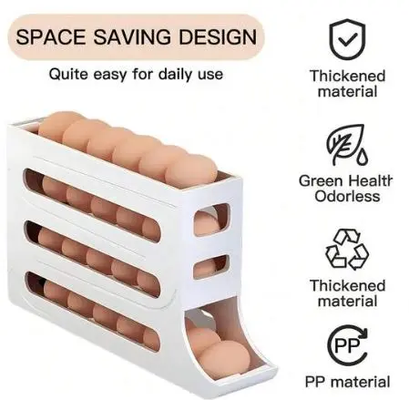 Organiza tus huevos de forma práctica y segura con esta rejilla de diseño inclinado que permite que rueden automáticamente hacia adelante. Su estructura por gravedad dispensa un huevo a la vez sin atascos ni caídas.